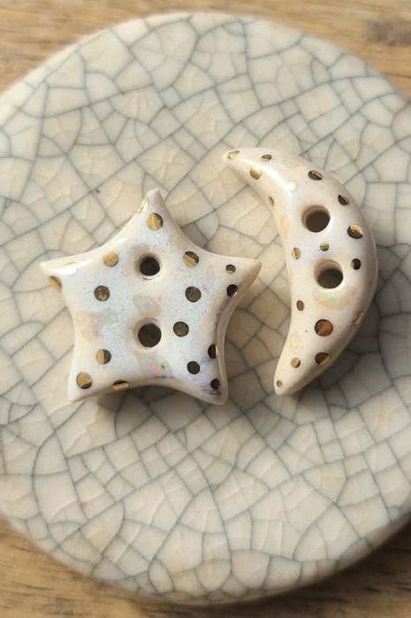 Clone of Moon & Star Sparkle / Ceramic Button Set w/ Gold Luster