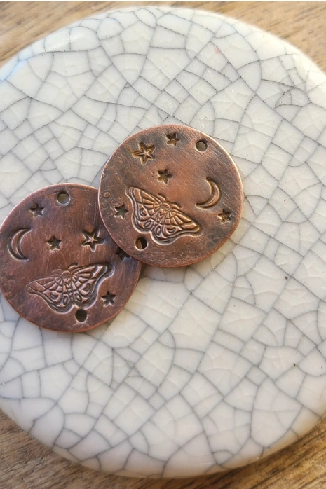 Stamped copper links.