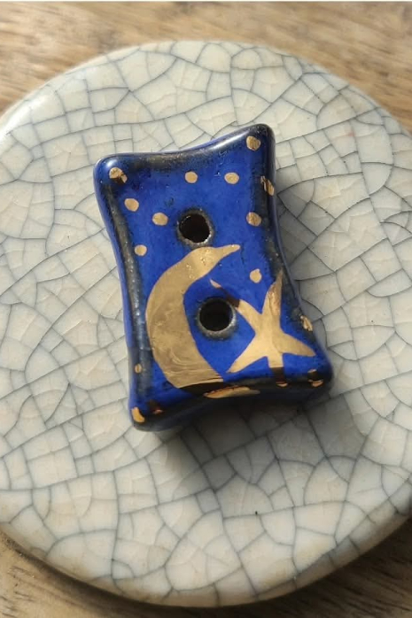 Handmade ceramic button with gold luster.