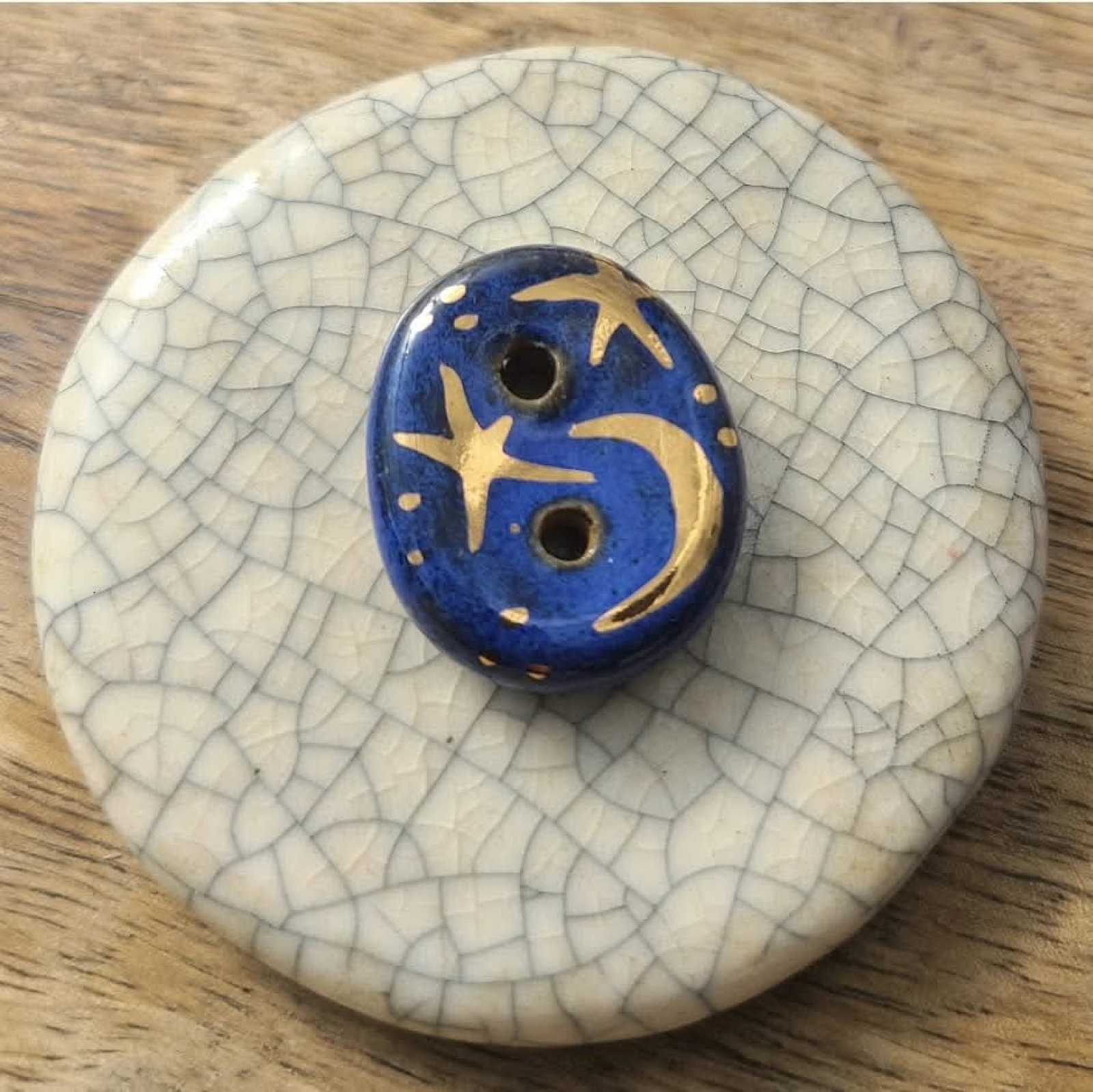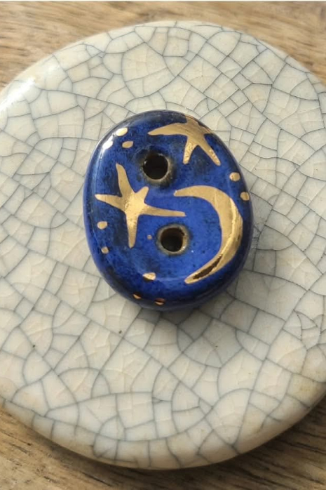 Indigo Stars / Ceramic Button w/ Gold Luster