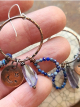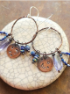 Stamped copper, iolite, lapis and sterling silver ear wires.