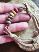 Handmade ceramic beads on wire wrapped copper wire with ultrasuede cord and a copper clasp/links. This one-of-a-kind adjustable bracelet measures 8" to about 8 1/2".