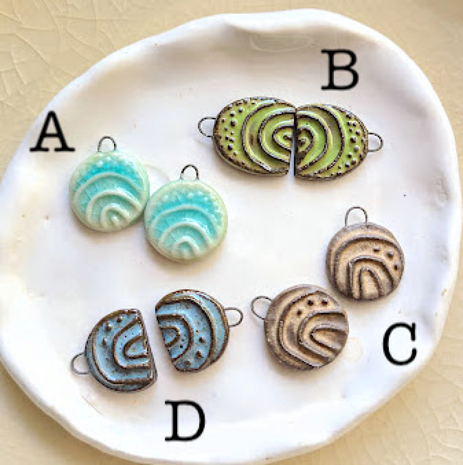 Handmade and desgined with love, these charms are happy to be just as they are but would also love your creative input. Add sparkling gemstones or rustic seed beads... Your support of artist made goods is greatly appreciated! Dish is 2 3/4" wide.