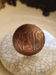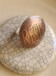 Etched copper with sterling silver band. Handmade... 1.25" copper disc on a sterling silver band...