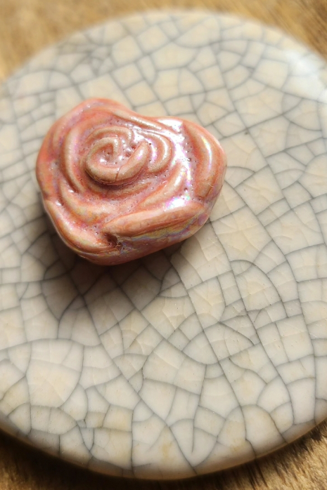 Rosie / Ceramic Bead with Mother of Pearl Luster