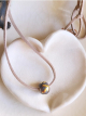 Handmade ceramic bead with gold luster on faux leather cord and a handmade copper clasp.